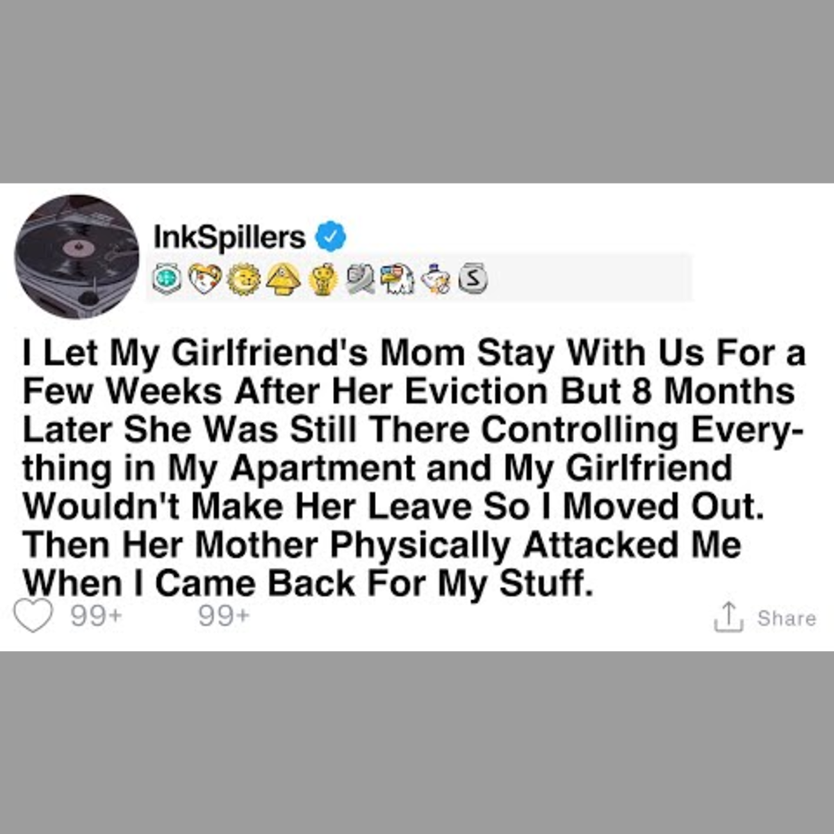 When I invited my girlfriend's mom to stay with us after her eviction, I expected it to be temporary. However, eight months later, she was still controlling everything in my apartment. My girlfriend refused to make her leave, leading me to move out. The situation escalated further when her mother attacked me as I returned for my belongings.
