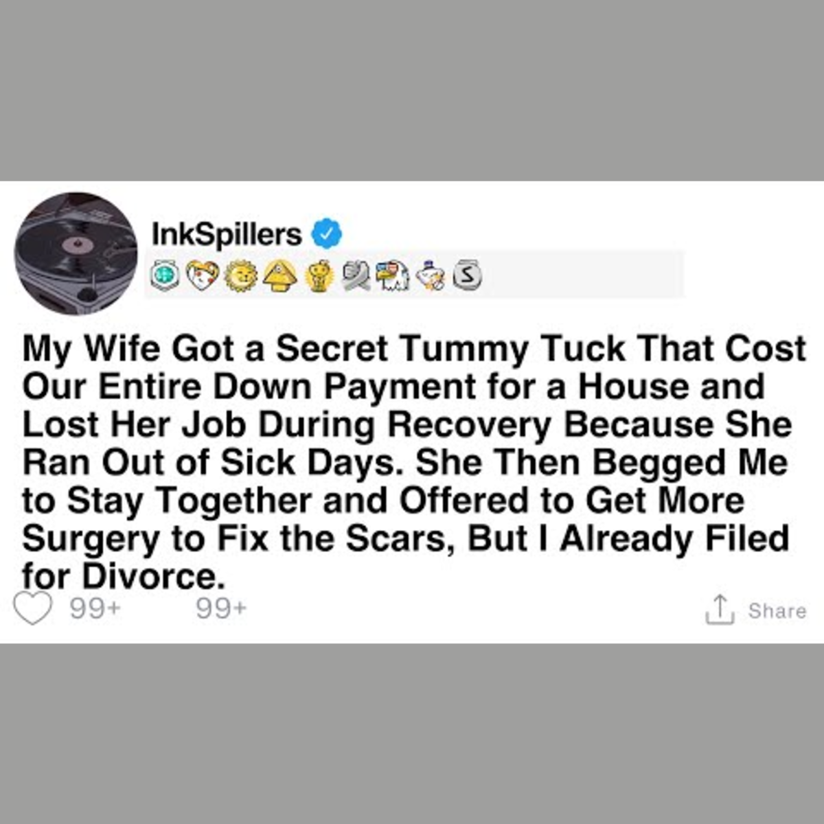 My wife secretly underwent a tummy tuck that consumed our entire down payment for a house and lost her job during recovery due to lack of sick days. She pleaded with me to stay together and offered to get more surgery to fix the scars, but I had already filed for divorce.