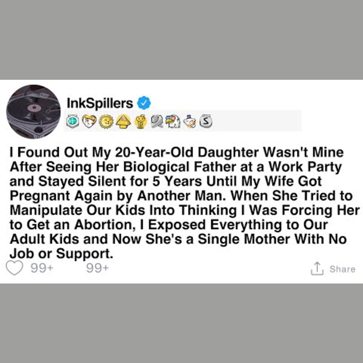 After 20 years, I learned my daughter wasn't biologically mine when I met her real father at a work event. I kept this secret for five years until my wife became pregnant again by another man. When she tried to convince our children that I was forcing her to get an abortion, I revealed the truth to our adult kids. Now, she faces life as a single mother without a job or support.