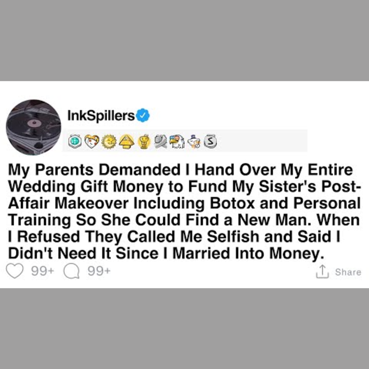 My parents demanded that I give them all my wedding gift money to pay for my sister's post-affair makeover, including Botox and personal training, to help her find a new partner. When I refused, they labeled me selfish and argued that I didn't need the money since I married into wealth.